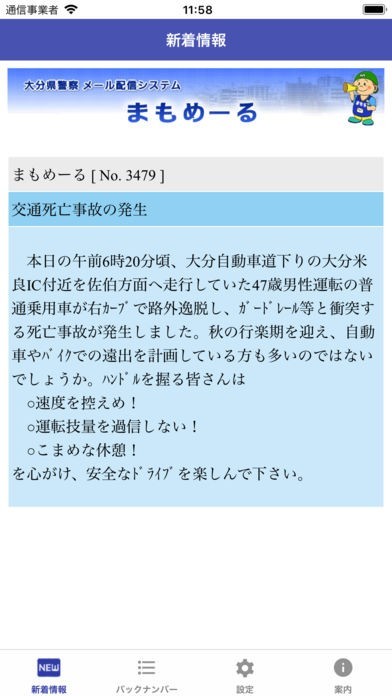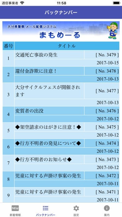 まもめーるは、大分県の警察からのメール配信情報を閲覧できる