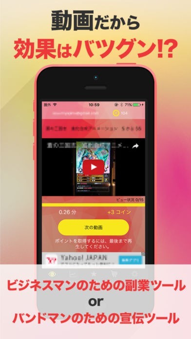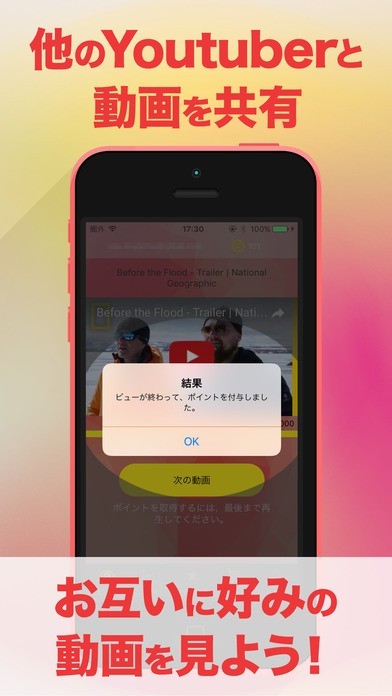 このアプリはアプリを通してyoutubu動画を見るとコインをもらう事ができます。そのコインを貯めて消費すると自身の好きなコミュニティに動画を投稿する事が可能となります。