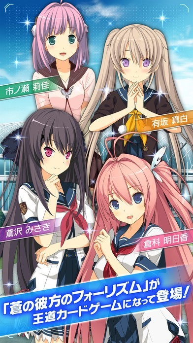 テレビコマーシャルも放送された「蒼の彼方のフォーリズム‐ETERNAL SKY-」は人気ゲームである蒼の彼方のフォーリズムをスマートフォンで楽しむことができるカードゲームアプリです。アプリ限定の完全オリジナルストーリーを楽しむことができるようになっていて、登場するRレベル以上の選手にはすべて豪華声優によるキャラクターボイスがついています。選手カードを選んで5対5で戦う白熱のユーザーバトルを勝ち進んで大会の優勝を目指しましょう!