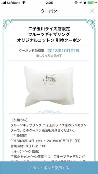フルーツギャザリングの店舗と連携できるアプリです。会員証を発行すれば、ショップのお得なセール情報や、クーポンなどの安く買うことのできる券をもらうことができます。