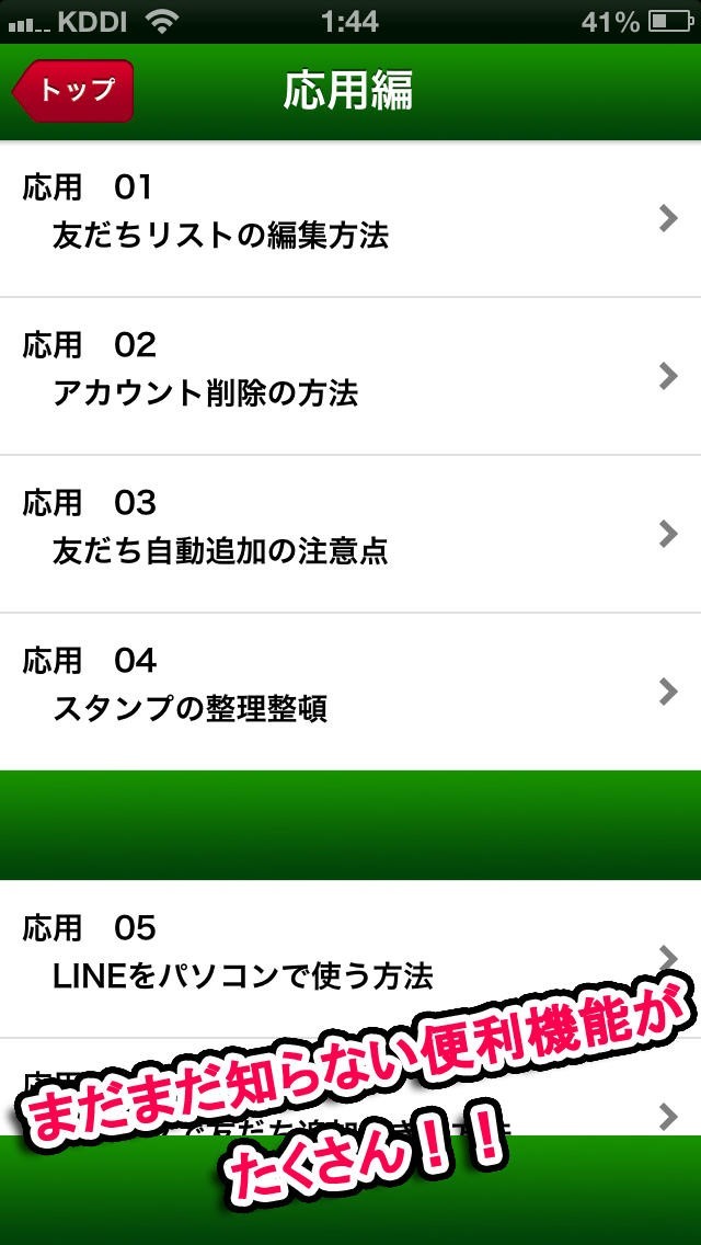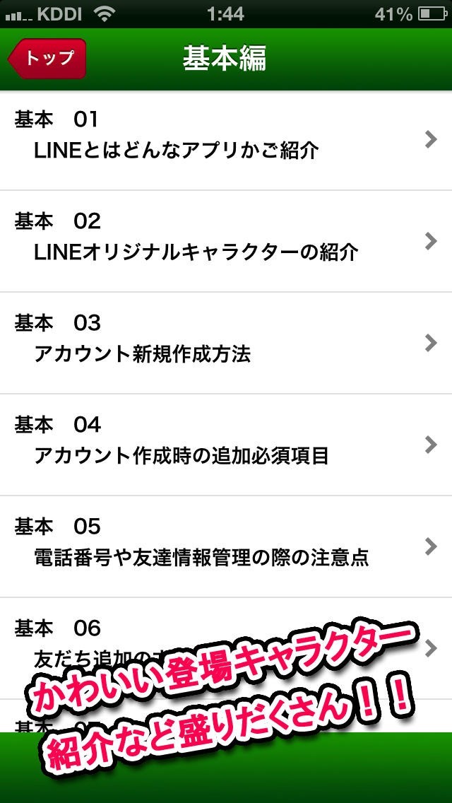 普段当たり前のように使っているLINEに関する基本的な情報や、意外と知られていない情報をゲットすることができるアプリが説明書 for LINEです。何気なく使っているからこそ、使いこなせていない機能が意外と多いことに驚くことが多い内容となっています。大きく分けて初めてスマホでLINEを使い始めるという方向けの基本編と、既にある程度LINEを使っているという方向けの応用編とがあります。短いコラムごとに少しずつ勉強できる仕組みになっています。