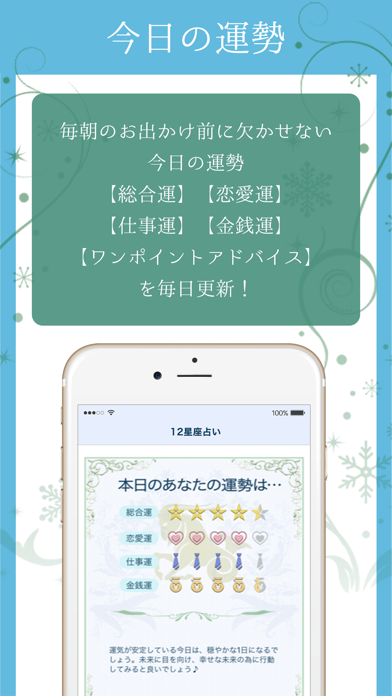 スマートフォンで誕生日によって定められた運命や宿命を知ることができるアプリとなっていて、二人の人気占い師による信頼できる占いを受けることが出来るようになっています。
