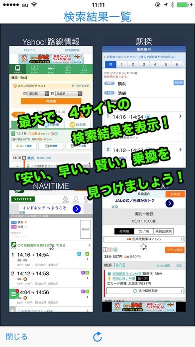 ・最大で4つの乗換サイトの一括表示または個別表示の設定。オススメは一括表示です。