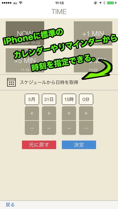 ・iPhoneに標準のカレンダー/リマインダーに登録されているイベントの時刻や、その10分前、20分前を簡単に指定することができます。
