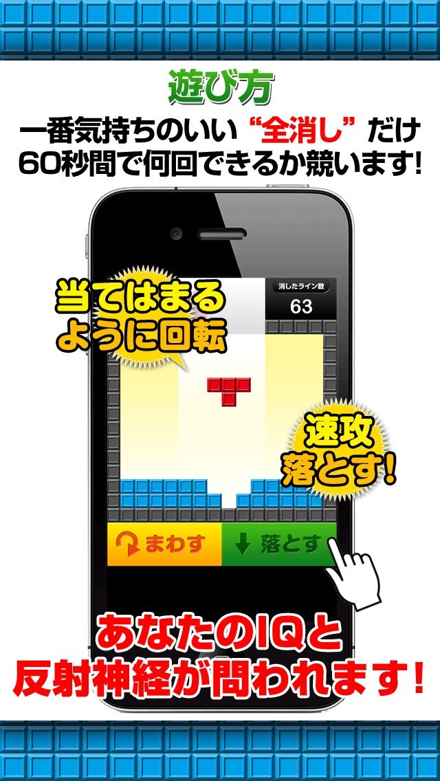 60秒間にできるだけ多くのブロックを消していく!思考力と反射神経が鍛えられるパズルゲーム!