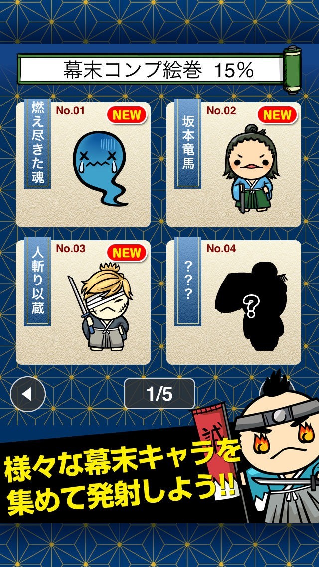 坂本龍馬をはじめ、全部で20種類ある幕末ヒーローを集めてみてください(^ω^)