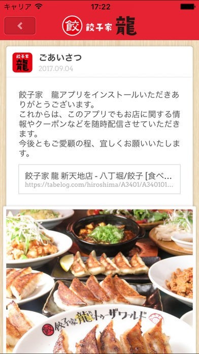 餃子家龍は、スタンプを貯めたり限定情報やお得なサービスがあります。お店からお知らせが届きます。お得な情報やクーポンの時があるので、来店前にはかさずチェックします。