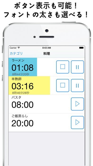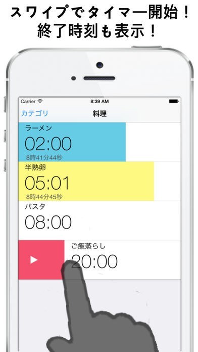 通常のタイマーは1つの時間しか設定できませんが、このアプリでは複数の時間をセットできるようになっています。スワイプで一時停止など操作が簡単なのも嬉しいポイントです。
