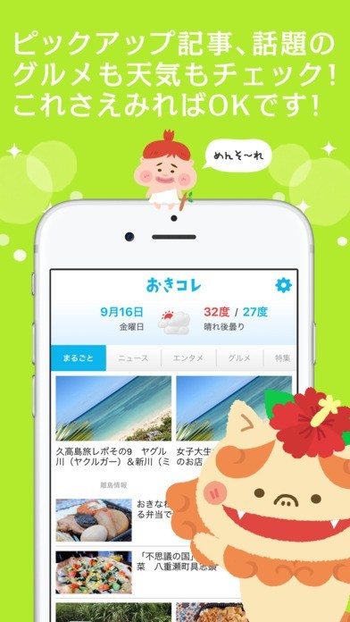「沖縄情報アプリ「おきコレ」」は、沖縄に関連する社会、経済、イベント、スポーツ、テレビ、ラジオの情報を毎日得ることが出来るだけではなく、全国のニュースについての情報を見ることも出来ます。さらには、沖縄の天気予報なども見ることが出来るので、沖縄に興味がある人が沖縄に関連するたくさんの情報をこのアプリで集めることが出来ます。