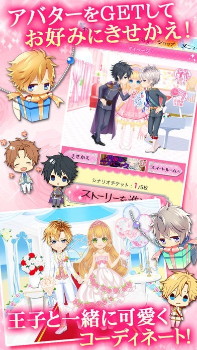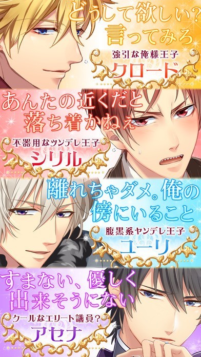 選択肢を選ぶだけの簡単操作でイケメンセレブな王子様とのイケない契約結婚生活が楽しめちゃえます。またかわいいアバター機能搭載であなただけの素敵なアバターを作ってユーザー同士で交流することもできます。