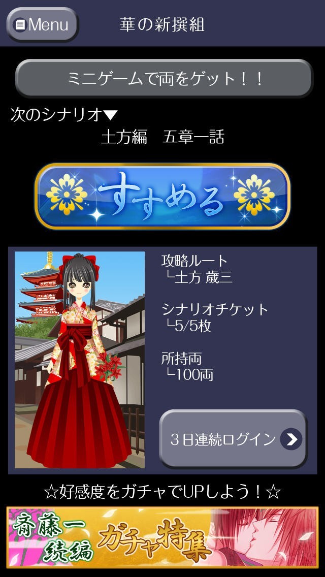【無料恋愛ゲーム】華ノ新撰組〜蜜夜秘めがたり〜のスクリーンショット