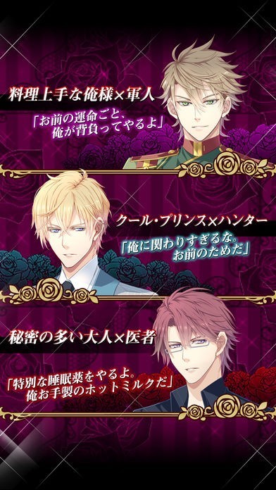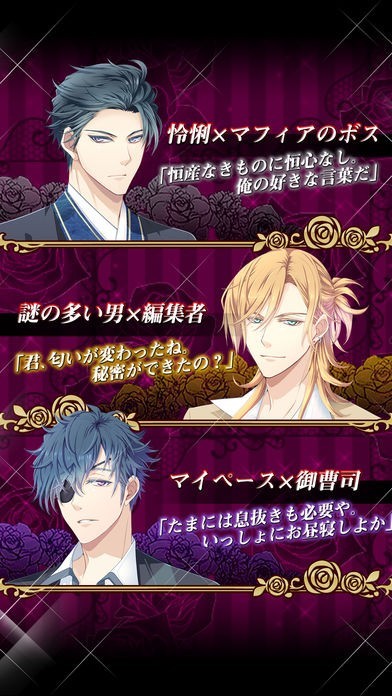 多彩なイケメンが登場するストーリーを読み進めながら、時々登場するセリフの選択肢から好きなものを選び、お相手と両想いになることを目指す恋愛の疑似体験がスマホで楽しめます。