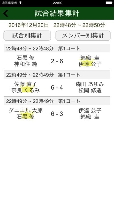 テニス対戦組合せ自動計算アプリ iMatchupの順位推移表