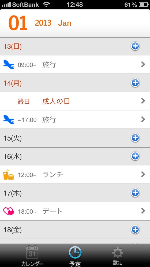 仕事や外出など予定のカテゴリ以外にも誰とどこで出かけるのかなど細かな情報を入力することができます。他人にスケジュールを伝える際にも情報を伝えやすくなっています。