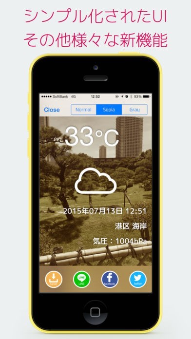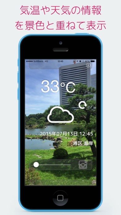 このアプリを使う事で今の天気とその場所の風景を一緒に映す事で誰かにそれを伝えたい時に簡単に伝える事ができます。いくら温度や天気言葉で伝えても伝わらない事も画像も映すのですぐにそのすごさが伝わります。