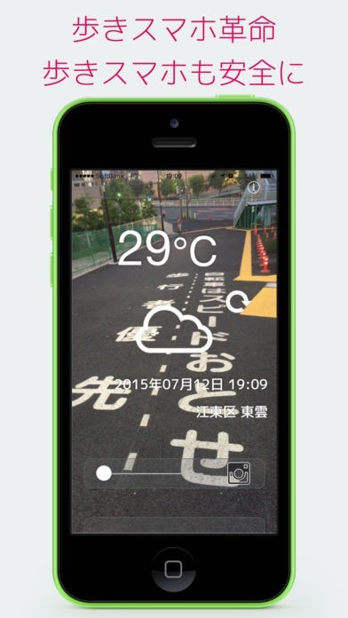 景色の上にお天気が表示されるのでアプリを開く手間が省けてお手軽で使いやすいです。