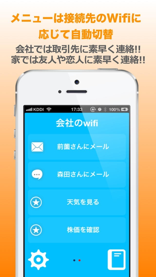 「SpotLauncher」は接続先のWi-Fiを判別して、表示を切り替えることができるランチャーです。非常にシンプルで無駄のない表示でわかりやすいのが魅力的、メールアドレスや電話先を登録すれば、ワンタッチ連絡できます。会社や自宅といったWi-Fi環境にあったメニューや連絡先を自動で表示、その場に合った使い方が可能です。新しいWi-Fiを発見した時にはすぐに設定に移行、登録もとてもスムーズ、不要なWi-Fiは設定不要のリストに登録できます。