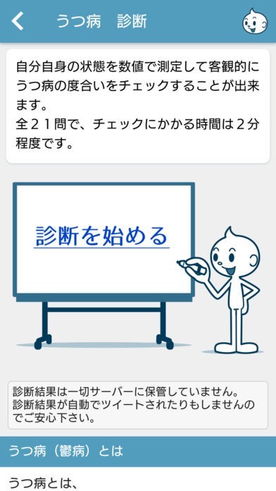 「メンタルヘルス診断 - うつ病、アスペルガー症候群などの診断」は、スマートフォンで自分のメンタルヘルスの状態についてチェックすることができるアプリとなっています。