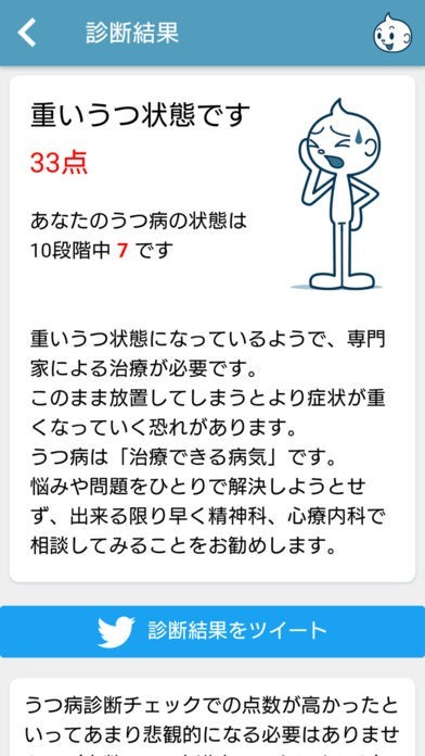 Twitterに診断した結果を投稿することができる機能が搭載されているので、Twitterを通じて友達や家族などに自分のメンタルヘルスの状態を知ってもらうことができます。