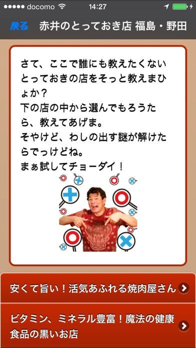 本当は教えたくないようなとっておきの店の情報はクイズに正解することでゲットできます。地図で探す場合もあり、宝探しゲームをしているような感覚で楽しみながら店を見つけられます。