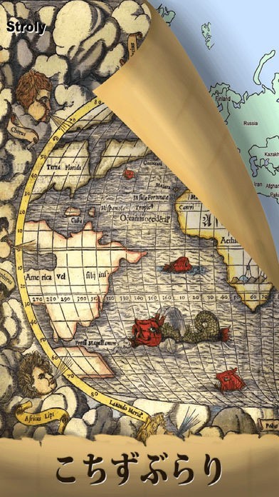 自分のGPS位置情報を古地図の中で確認できるユニークなアプリです。標準地図も搭載しているので、位置確認として使うこともできますが、メインの目的は過去にタイムスリップした感覚を味わうことです。古地図をたよりに移動すれば、現在位置も移動していくので、あたかもその時代の街並みを歩いているかのような感覚になれます。所々にその土地の解説もあり、ガイドのように情報を提供してくれます。世界各地の古地図を提供しているので、海外旅行先でも使えます。