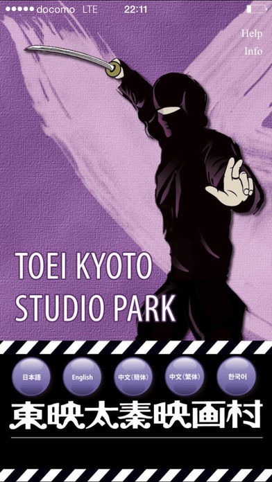 App Storeより引用「東映太秦映画村ガイド」では、京都市右京区にある東映太秦映画村の村内イラストマップに現在地を表示し、映画村内を散策しながら施設の説明を見ることができます。入場時に配布する多言語マップをベースに、日・英・中(簡)・中(繁)・韓の5カ国語でお楽しみいただけます。