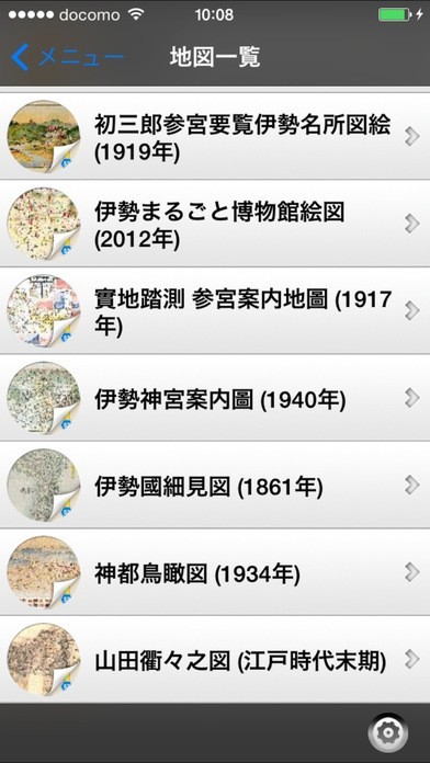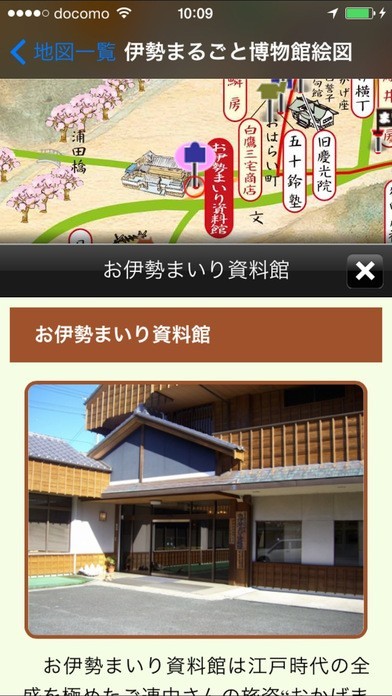 App Storeより引用「伊勢ぶらり」は、三重県伊勢地域の古地図やイラストガイドマップを、現在地情報付きで見ることができます。
