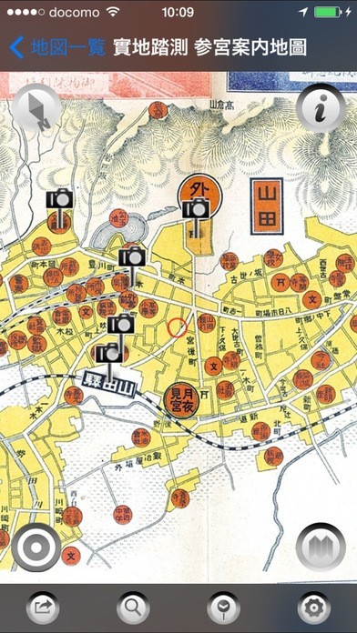 * 古地図とAppleMapsとの表示を切り替えることができます。