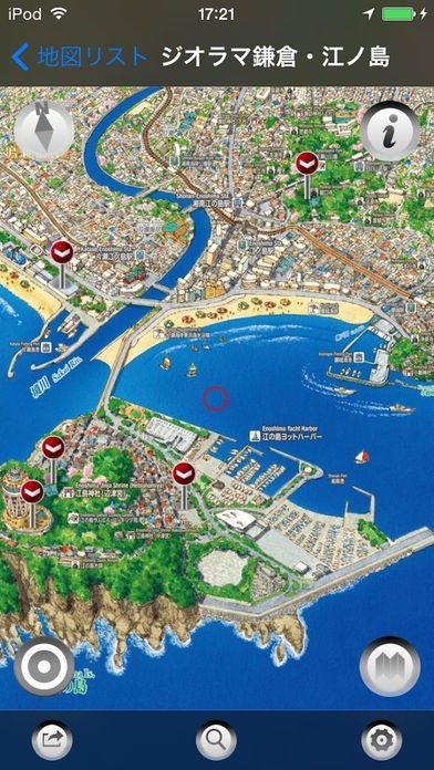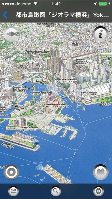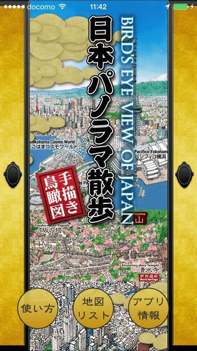 衛星画像は一般の人でも入手が容易となりましたが、立体的な部分はデジタル処理が加わるため、不自然に見えることが多々あります。一方のこのアプリは手書きの鳥瞰図ですので、地図マニアでも満足できるようなリアルさが魅力です。