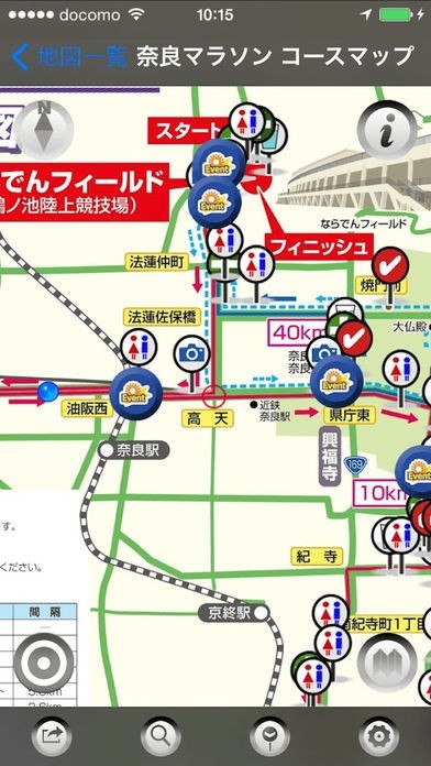 奈良マラソン2017のコースなどをナビゲーションしてくれる