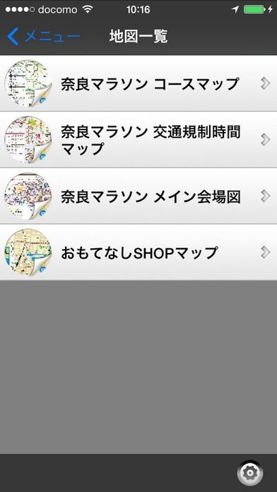 奈良マラソンのコース情報が入っており、イラストと標準の地図の2種類を切り替えてみることができます。当日の交通規制時間なども記載されているので、近くにお住いの方には便利です。