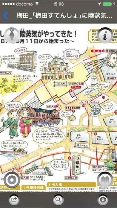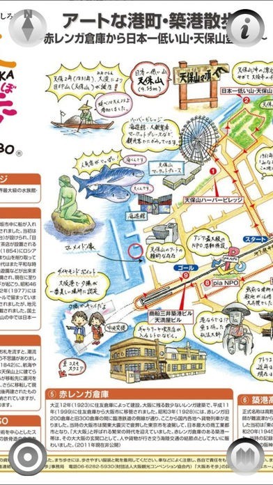 大阪あそ歩というアプリは色鉛筆で描かれたような柔らかみのある可愛い絵と共に大阪観光ができるというアプリになります。大阪に今も残っている歴史を紐解きながら楽しく散歩ができるという良さがあります。
