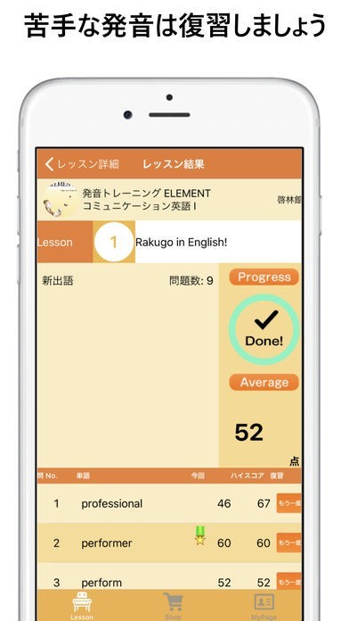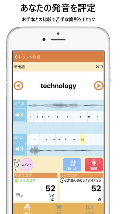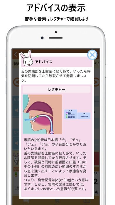 App Storeより引用本格的な発音トレーニングを手軽に実現できるソフトウェアです。国際電気通信基礎技術研究所(ATR: AdvancedTelecommunication Research Laboratories)において長年にわたり培われた研究成果と音声情報処理技術を活用した発音学習ソフトです。日本人英語学習者にとってわかりやすい「発音習得への手がかり」とはなにかを追求しました。