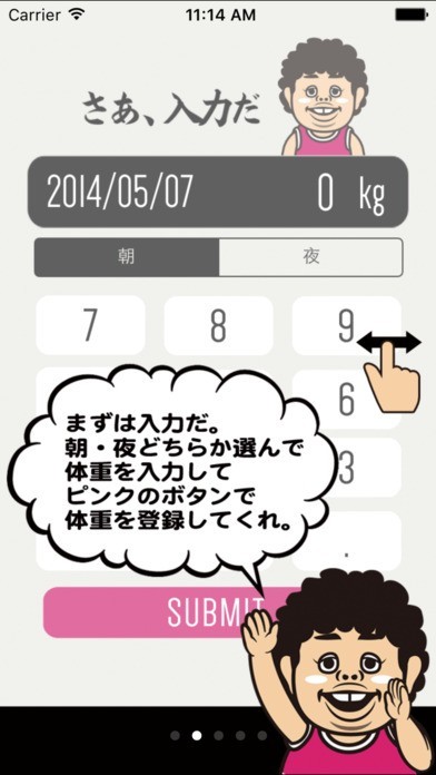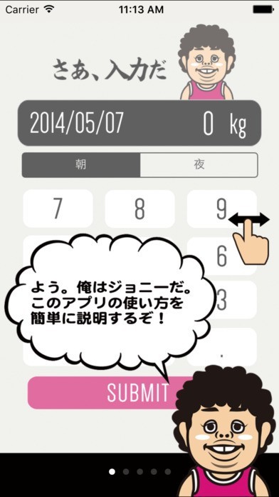 ぽっちゃりキャラのジョニーが毎日の体重記録をサポートしてくれる!