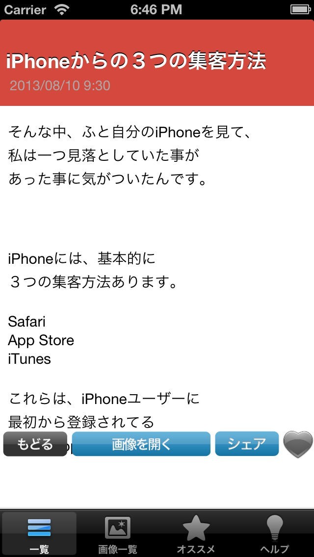 ネットビジネスに関する情報を配信している「ネットで日給1万円!副業で稼ぐアイディア」は副業に役立つアイディアや効率的に稼げる手段を多彩に紹介してくれる雑誌アプリで、カテゴリー別に記事を閲覧出来る特長があります。「オススメ」から話題のコンテンツを素早く確認することが可能ですし、気になる情報をSNSに共有出来るのが機能のメリットでしょう。記事に収録されている写真やイラストを「画像一覧」でチェックしていけます。またお気に入りに記事を保存出来るようにもなっています。プッシュ通知に対応しているため、配信タイミングに合わせて素早く新着コンテンツを楽しめるでしょう。