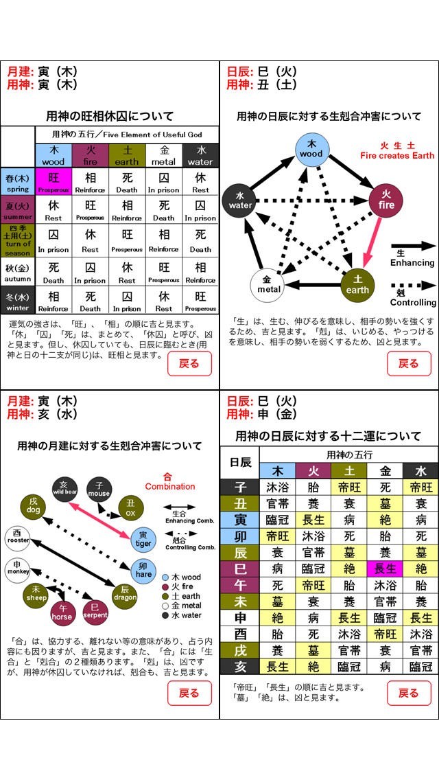 また、占い結果の干支や五行の関係を確認できますので、断易入門者の方にも、お役に立つと思います。