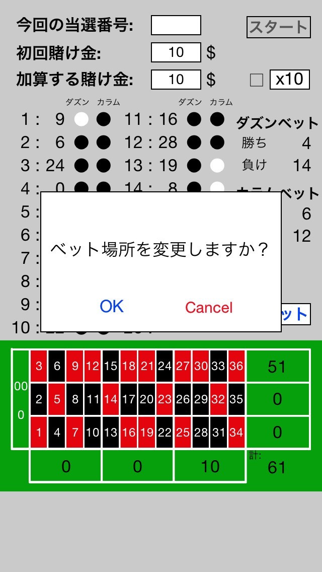 ・賭ける場所は、フィボナッチ数列を応用してアプリ側で決めていますが、賭けたい場所をタッチすれば好みの場所に変更できます。