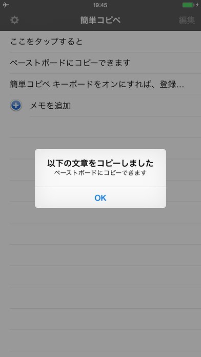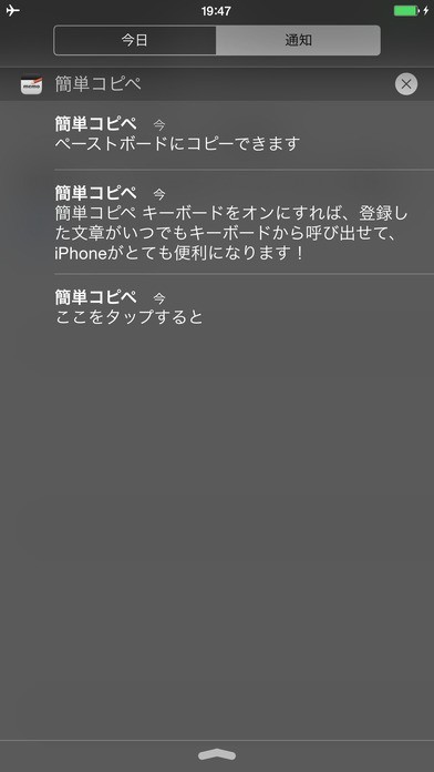 いつも同じような文章を何度も繰り返し書いている、定型文をメモ帳に保存していちいちコピーしている。 そんな作業をちょっと面倒だなと感じている方には、こちらの便利アプリ『簡単コピペ』が最適です。 定型文や署名、アドレスなどのよく使う文章をアプリに登録するだけで、手軽なコピー&ペーストが利用可能! 同じ文章を何度でも呼び出せるようになるため、これまで面倒だった作業の効率化も図れます。 通知センターへの登録機能も搭載。使いたいと思った時に、通知センターかたすぐに起動できるのも便利なポイントです。