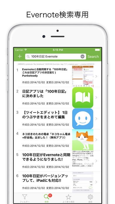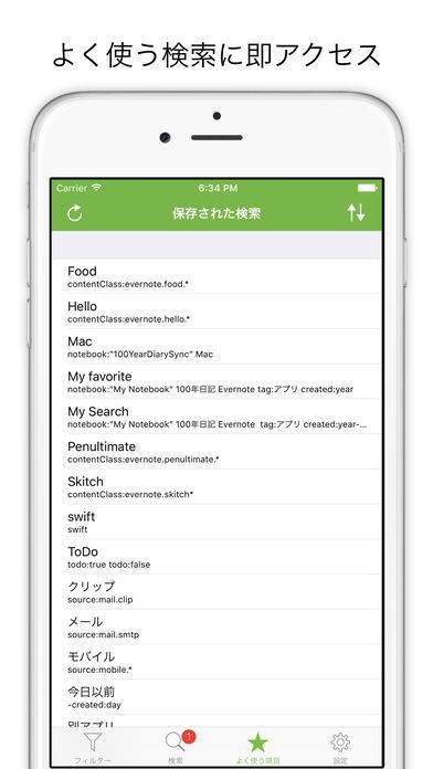 Evernote専用のノート検索アプリです。フィルター機能により、細かい内容に絞って詳細検索することもできるのでノートの数が多くても瞬時に探し出すことができます。