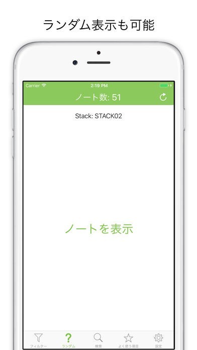 保存されているノートを次々にランダムに表示させることができます。学業や仕事に関する内容を保存している場合は暇な時間に復習するために活用することができる機能です。