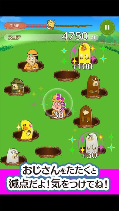 おじさんも出てくるけど叩くと減点。気をつけよう!