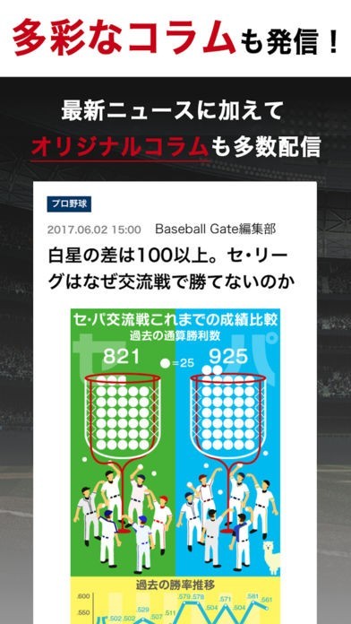 最新野球ニュースはもちろんですが、このアプリでしか読めないオリジナルコラムも多数連載され、読み応えは十分。野球通から最近野球に興味がある人まで幅広く楽しめるように作られています。