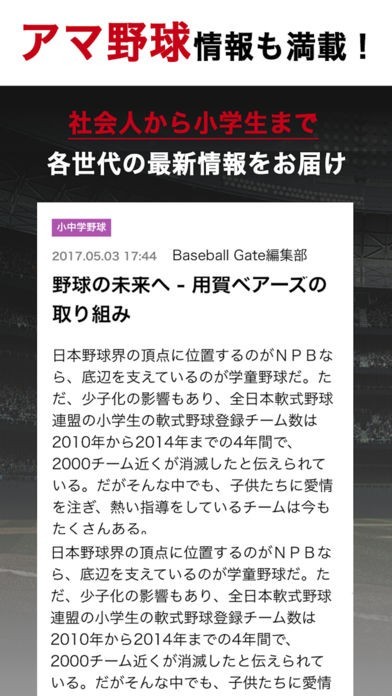 プロ野球、メジャーリーグだけじゃ物足りない、大学野球、高校野球も、小中学野球も、全部詳しくなりたい。そんな野球を愛している人のためのニュースメディアです。野球情報はこれひとつで十分。そう思ってもいいほどたくさんのニュースがここに集まります。