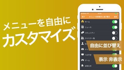 ・メニューのカスタマイズ(表示/非表示の切り替えが可能、好きな順番に並び替えが可能)