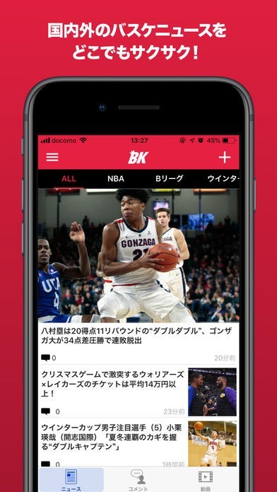 バスケットボールに関する最新ニュースや選手の情報が調べられるスマホアプリ