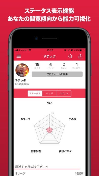 BリーグやNBA等の国内外の情報に対応していて、バスケットボールに関する記事が細かく閲覧出来るようになっています。各チームの順位や成績が表示出来るのも利点ですね。