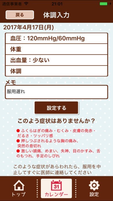 「つづけるミカタ」を使うことによって、お薬を飲み忘れてしまうということを減らしてくれるので、てんかんなどの持病を持っており、大変な事態になってしまうというような方の助けとなります。 時間になると青いボックスに「お薬の時間です」という表示がされるので、服用チェックへをタップしてしっかりと確認したことを示せます。 また、万が一忘れてしまった場合にも対応策を示してくれるので、焦らずにすみます。 加えて、カレンダーにデータを保存しておけるので、薬の残量などを把握するのに役立ちますし、もうすぐ病院に行ったほうがいいというような判断をすることも出来ます。 このような個人情報は、パスコードを登録することによって、他の方には絶対にもれないようにできます。 また、スキンやフォントを変えて気分転換することも可能です。