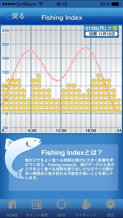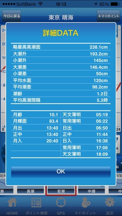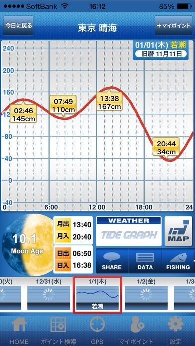 GPS検索に対応していて、周辺の潮汐情報をチェック出来るのが良かった