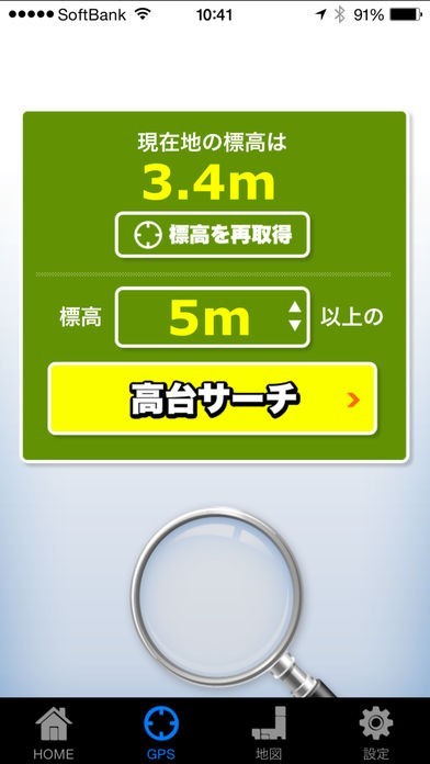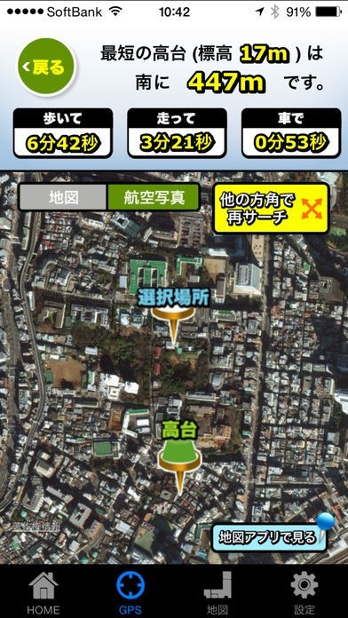 現在地の標高を調べる機能だけではなく地図や航空写真に表示されている任意の場所の高さを測定してくれるからいざという時にどこへ避難すればいいのかを調べることができるアプリです。