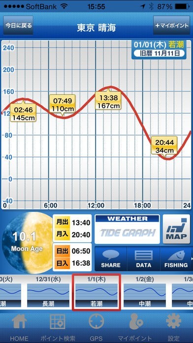 潮汐関連情報を簡単にチェックできるという良さがある